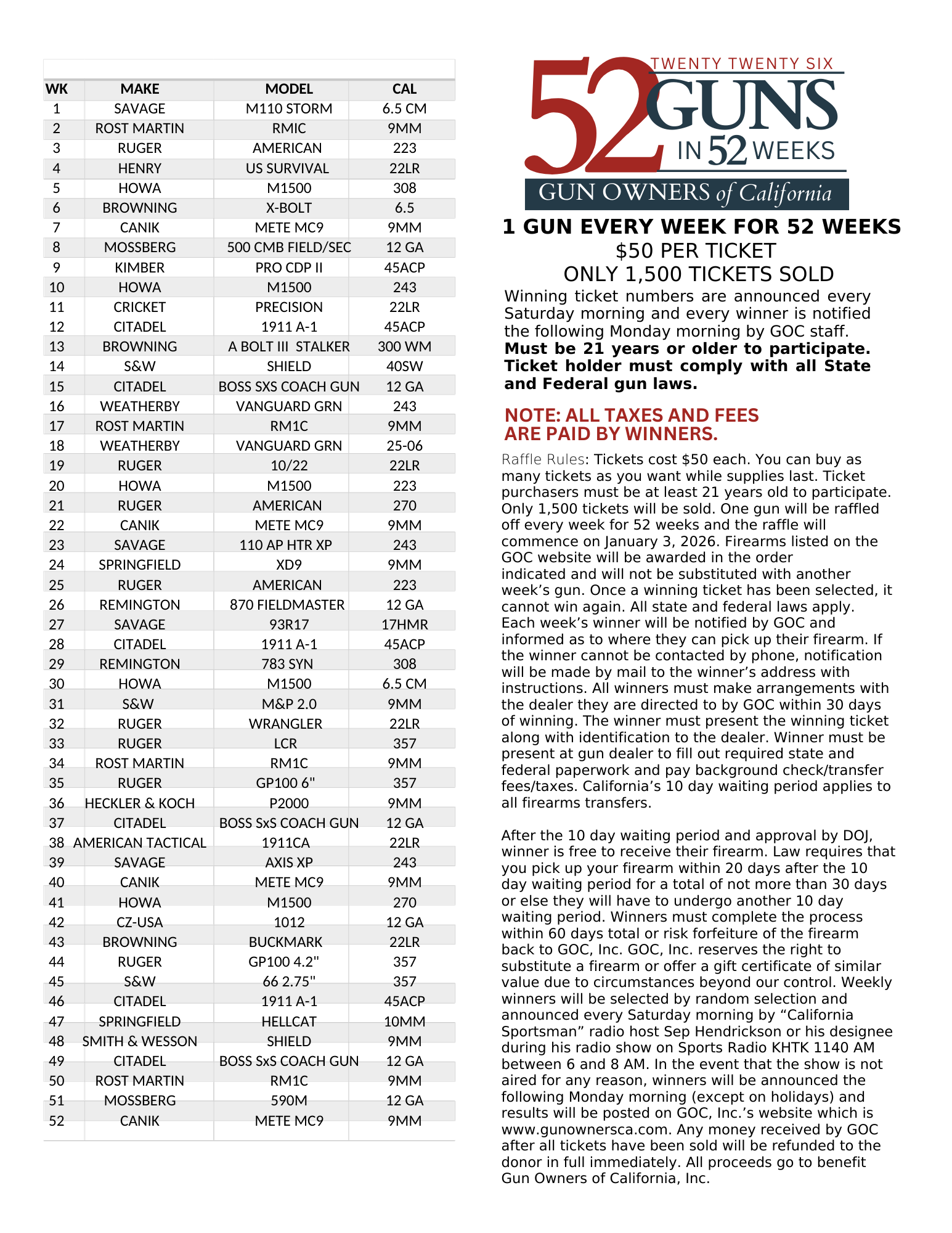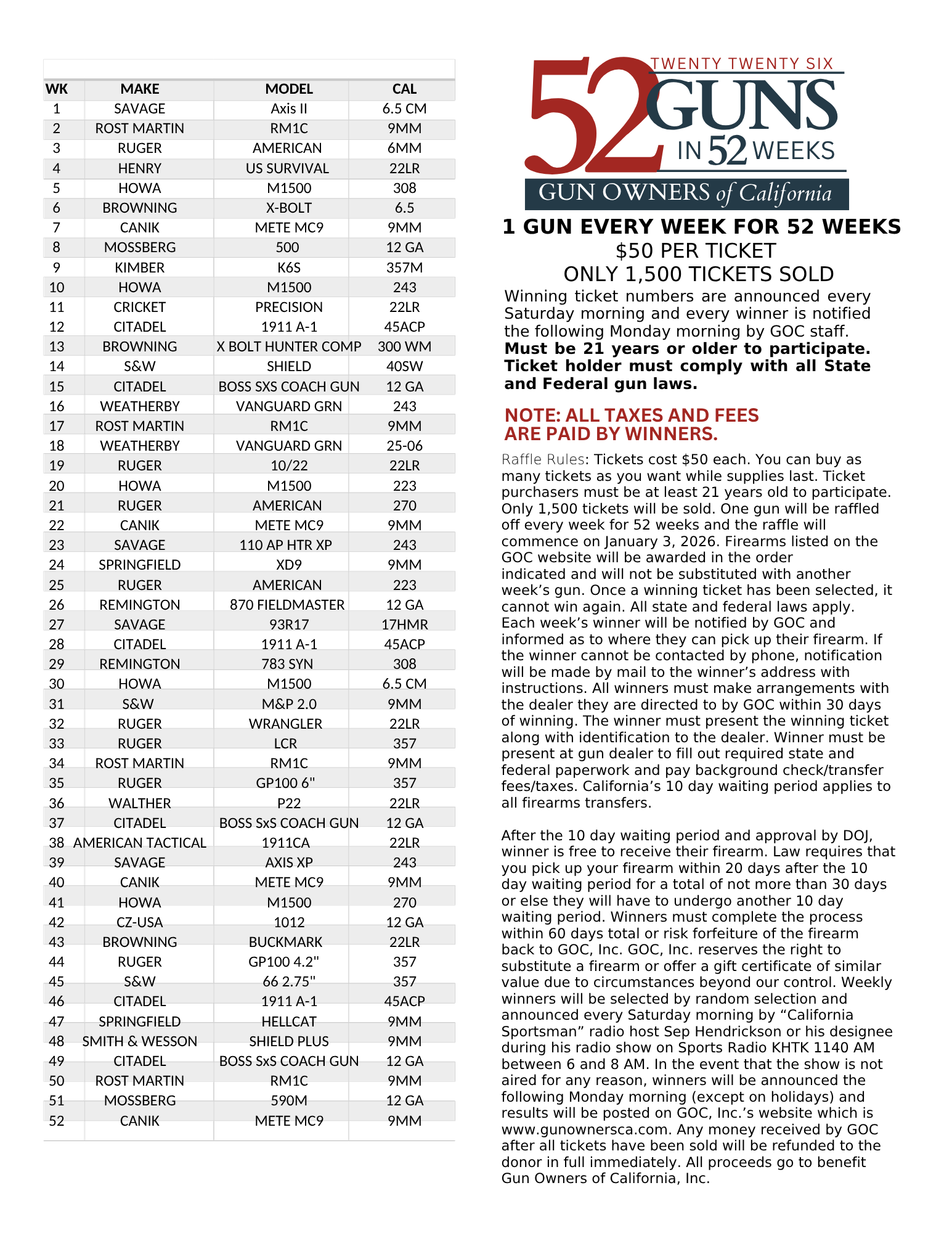 Gun Owners of California 52 Guns in 52 Weeks Raffle!