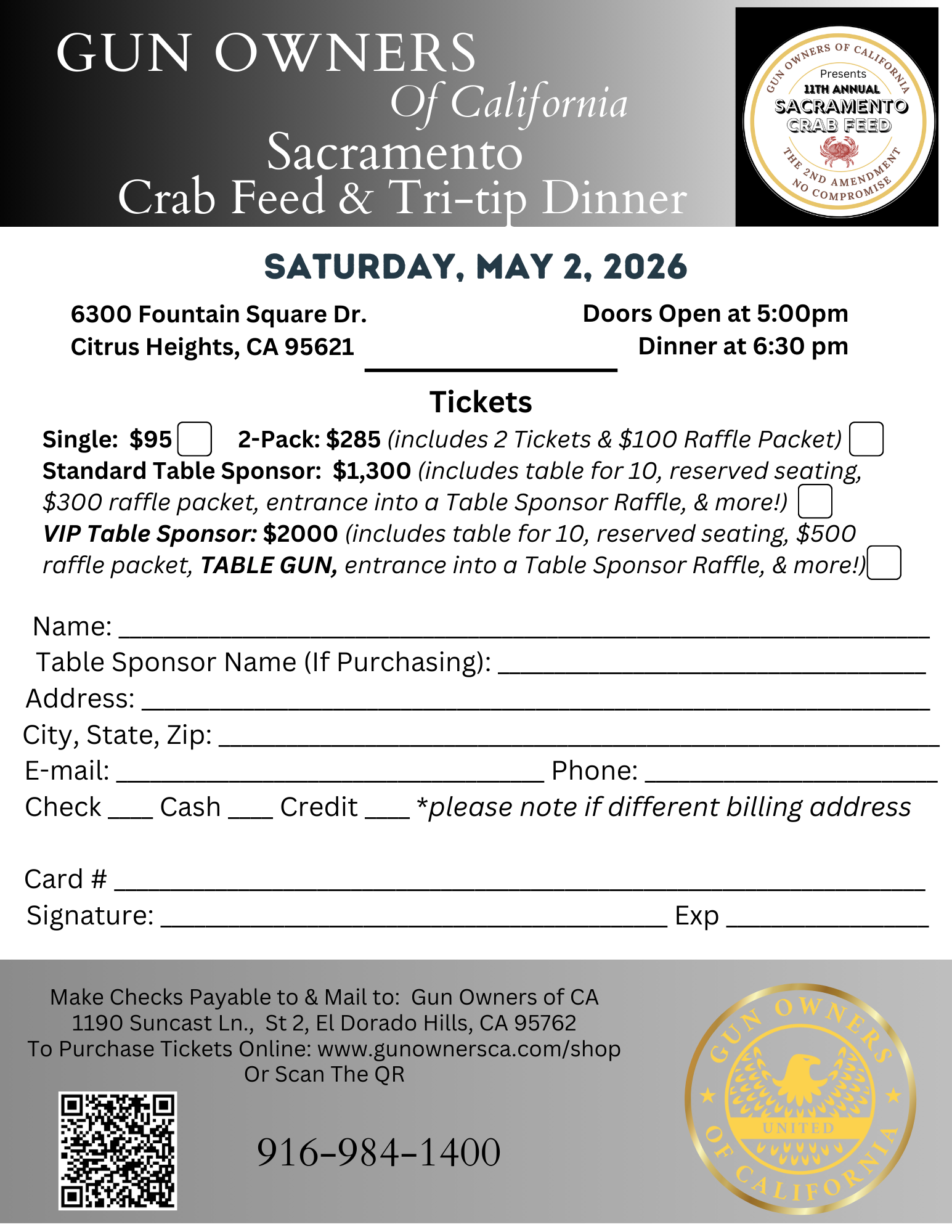 Each year, over 500 2nd Amendment advocates come together for an unforgettable evening featuring all-you-can-eat crab, drinks, live games and competitions, and a high-energy auction packed with firearms, gear, and exclusive items you won’t find anywhere else. This is not your average dinner—it’s a full-scale celebration of freedom, fellowship, and the fight to defend the Second Amendment in California.