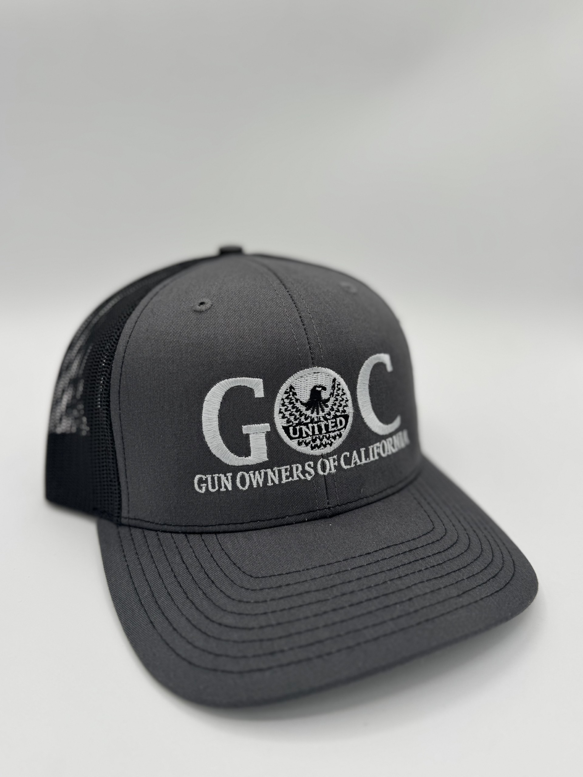 Show your support for Gun Owners of California with the most popular trucker hat in America — the Richardson 112. This structured, mid-profile cap features a pre-curved visor, adjustable snapback, and breathable mesh back for all-day comfort. Built for the range, the field, or everyday wear, this hat represents California’s most trusted voice for the Second Amendment. Get your own GOC trucker hat today!